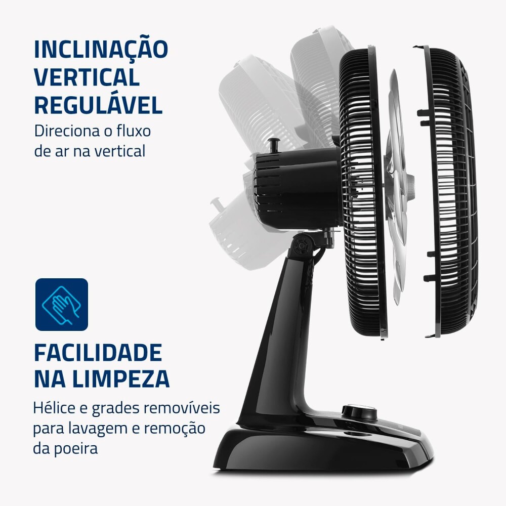 • VENTO TURBO: A linha de Ventiladores Turbo possui 40cm de diâmetro e hélice com 6 Pás. O design aerodinâmico proporciona forte ventilação e melhor distribuição de ar. O resultado é um ambiente mais fresco e agradável!