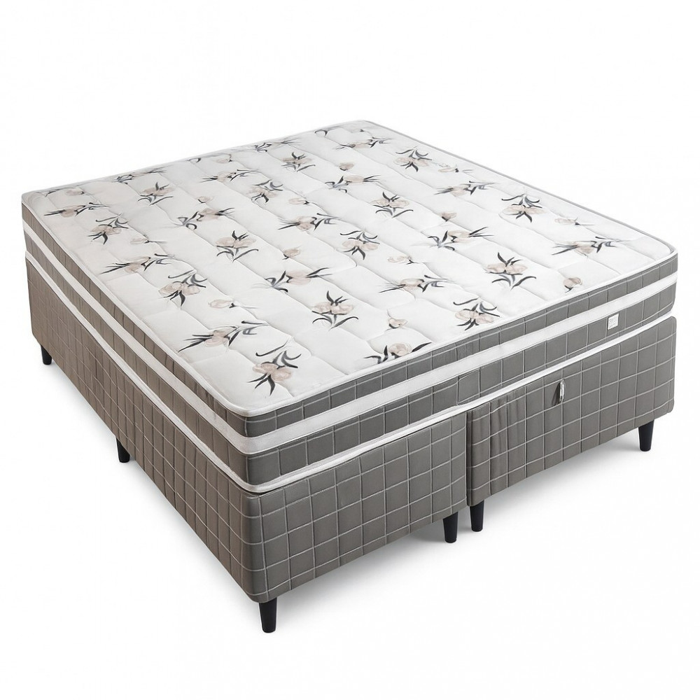 Conjunto Box Viena Queen ( Base+ Colchão) Molas Ensacadas 198x158x52 - Topazio