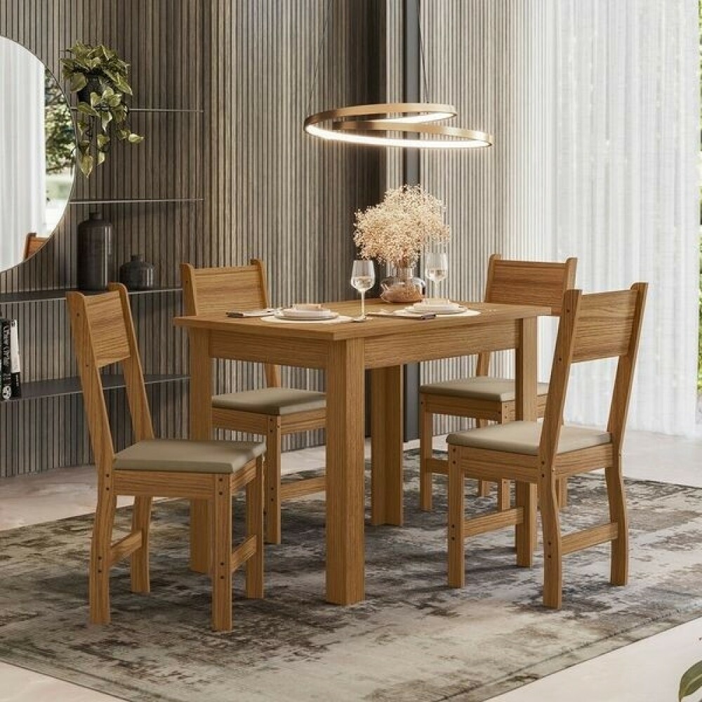 Conj. Mesa Bellagio 108x68cm, c/ 4 Cadeiras Milano, Carvalho - Poliman