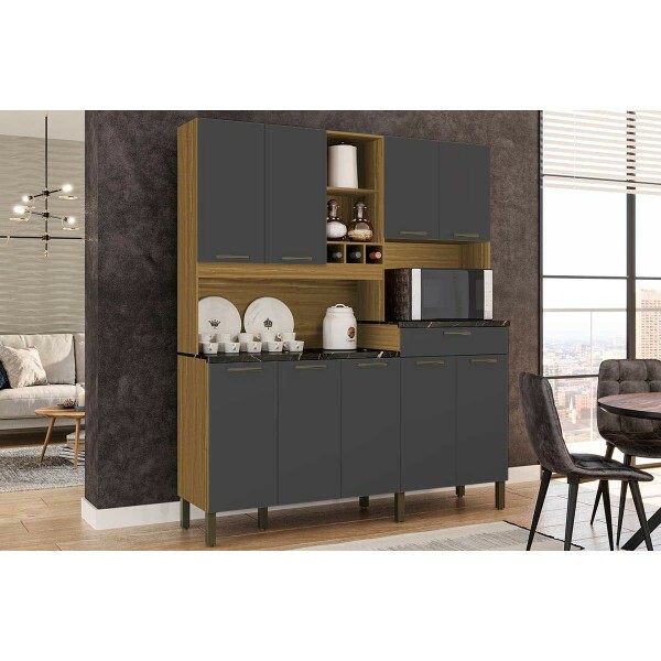 Armário de Cozinha Kit Cabernet Prime 100%MDF, Amendoa com Grafite - Ronipa