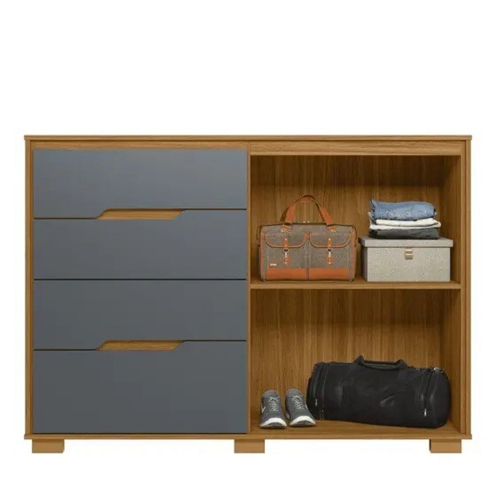 Cômoda com Sapateira Texas 4 Gavetas e 2 portas Freijo/Grafite - Moval
