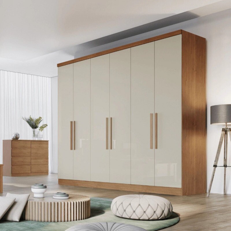 Guarda-Roupa 6 Portas 2 Gavetas Uruguai Freijó/Off White - Moval Móveis