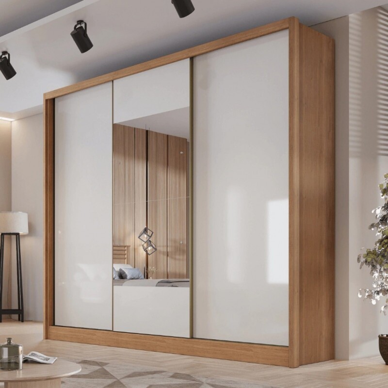 Guarda-Roupa 3 Portas de correr 6 Gavetas Arizona Freijó/Off White - Moval Móveis