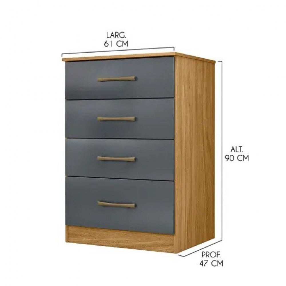 Cômoda para Quarto Com 4 Gavetas Moval MS913 Freijó/Cinza