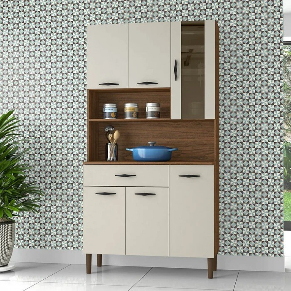 Armário de Cozinha Kit 6 Portas 1 Gaveta Golden Nogueira/Off White - Parana