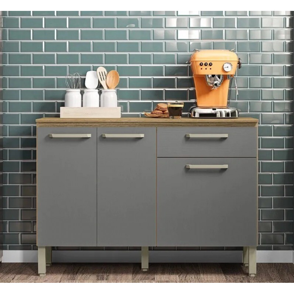 Balcão de Cozinha com Tampo 3 Portas 1 Gav 120cm Paraná Versalhes Freijó Gris