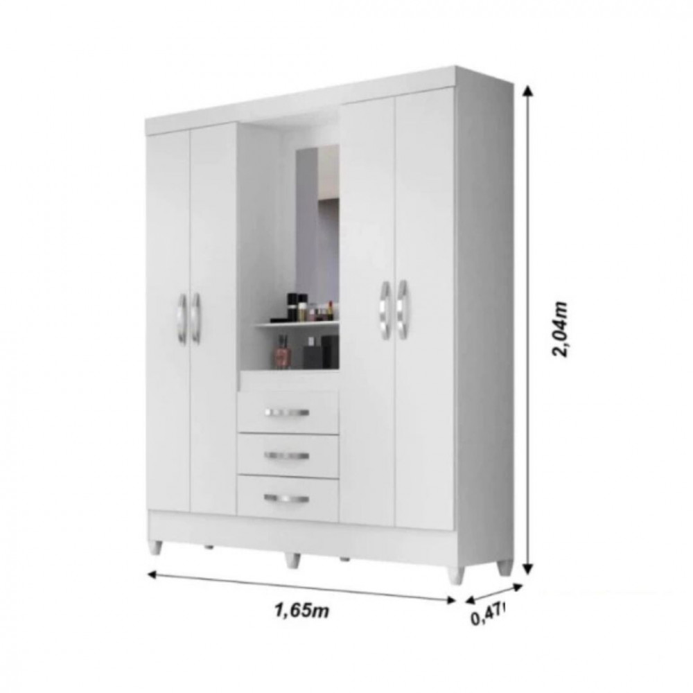 Guarda Roupa Solteiro 4 Portas com Espelho 3 Gavetas Capri Branco/Rosa - Moval
