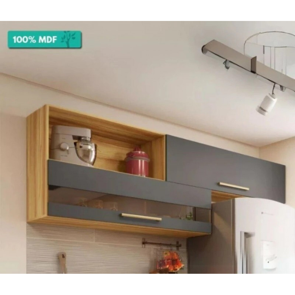 Armário Aéreo Duplo Carmenére c/ Vidro Reflecta - Ronipa - Amendoa/Chumbo