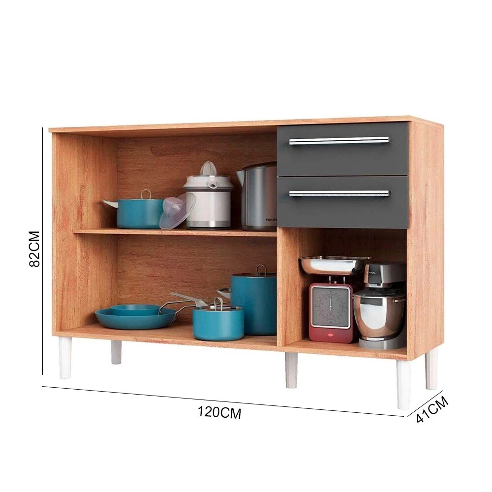 Balcão de Cozinha Carménère 3 Portas e 2 Gavetas c/ Tampo 120cm Amendoa/Chumbo - Ronipa