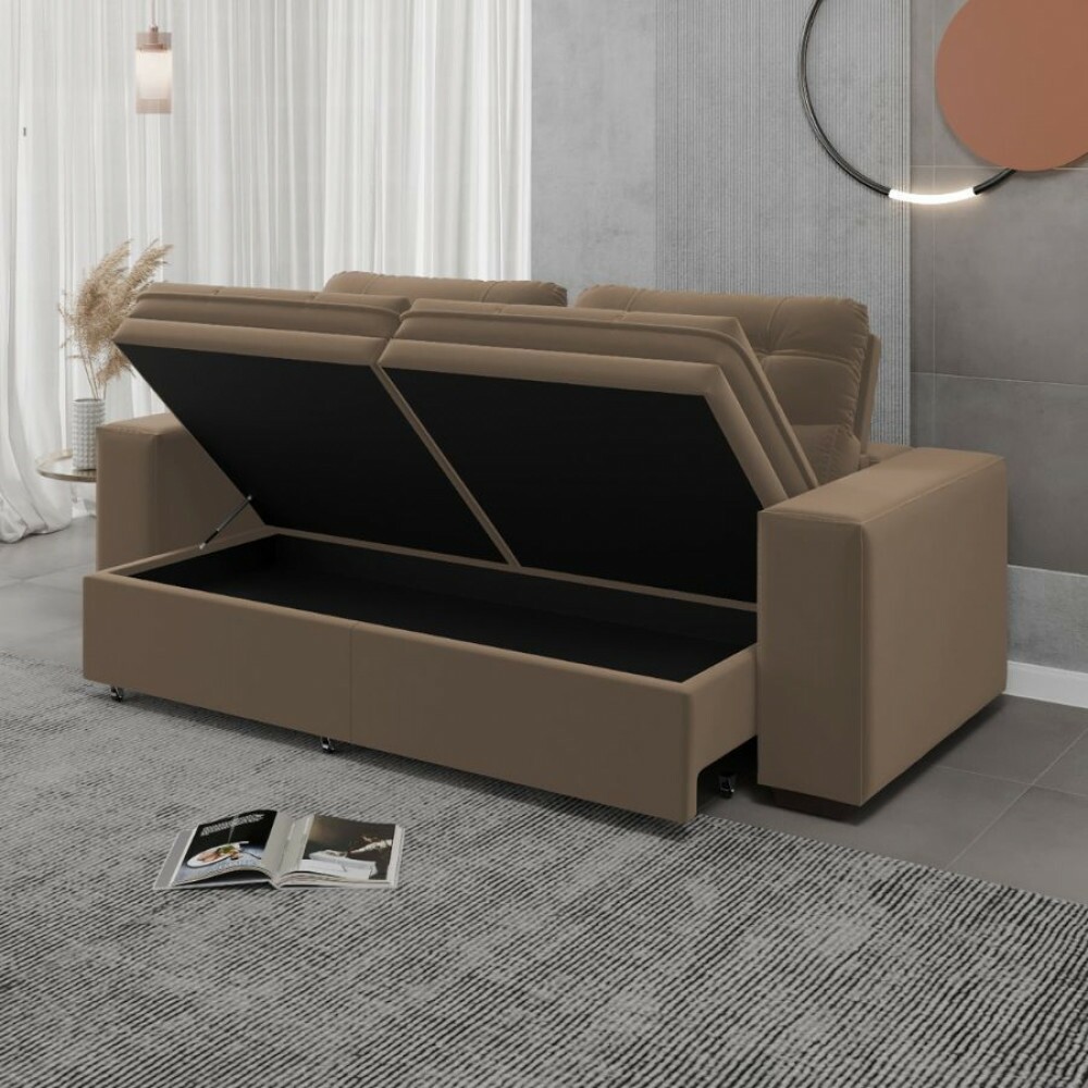 Estofado Retrátil Baú Bahamas 180cm 2LU/RET/REC Bege